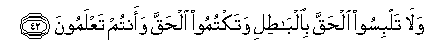 "And mix not truth with falsehood, nor conceal the truth while you know it." Holy Quran 2:42